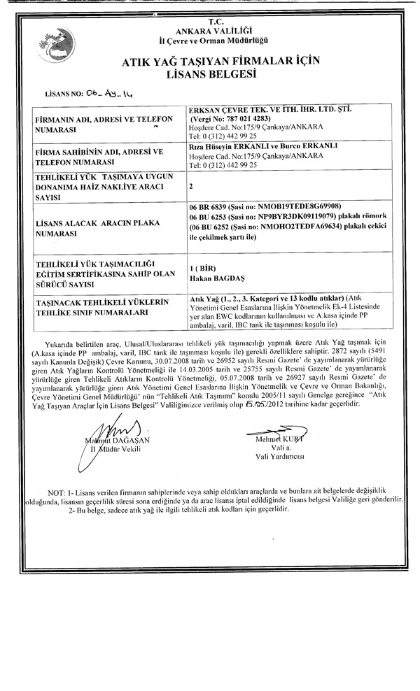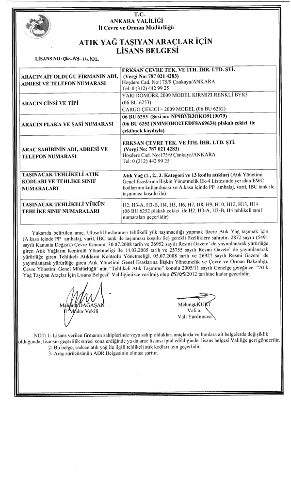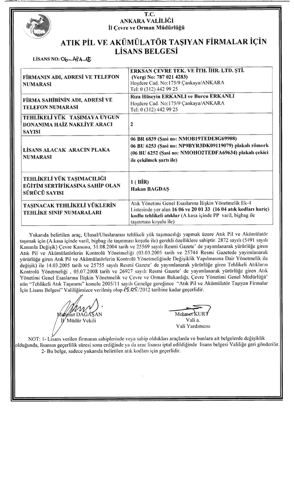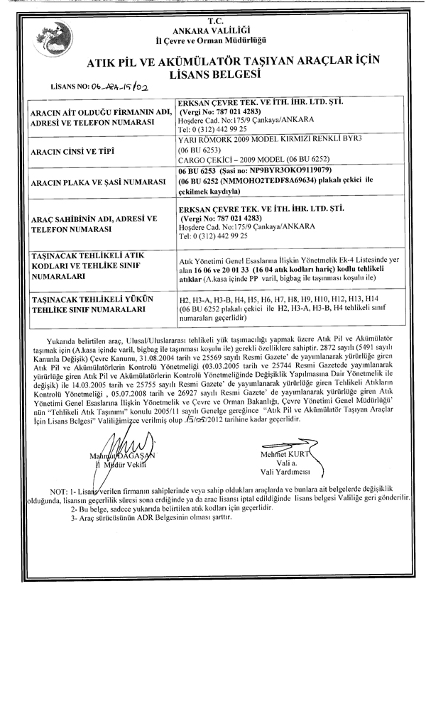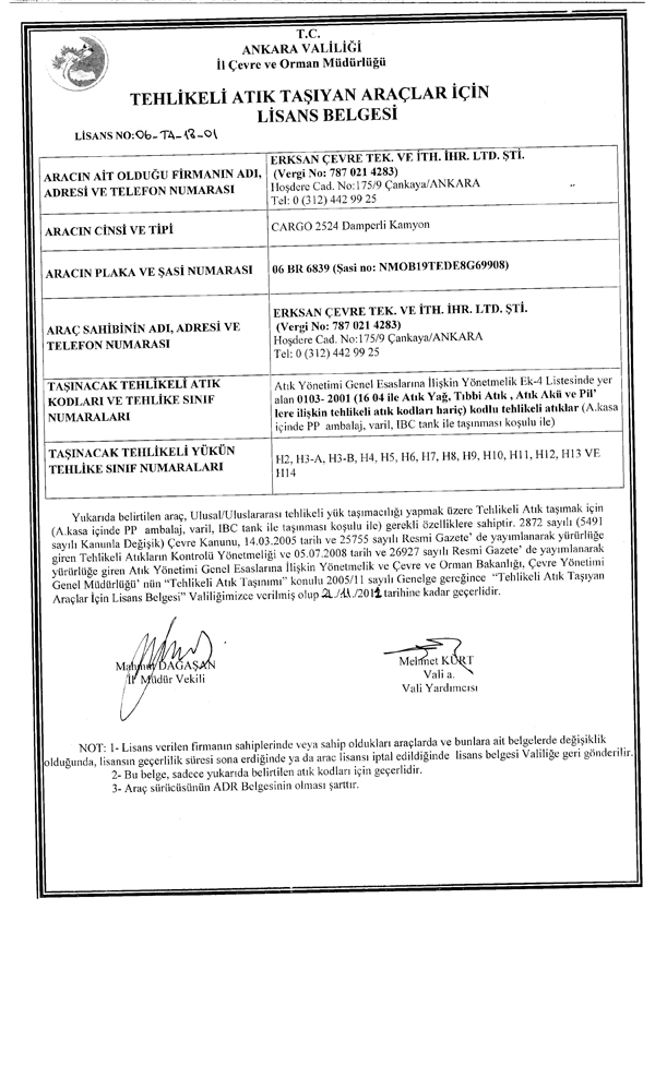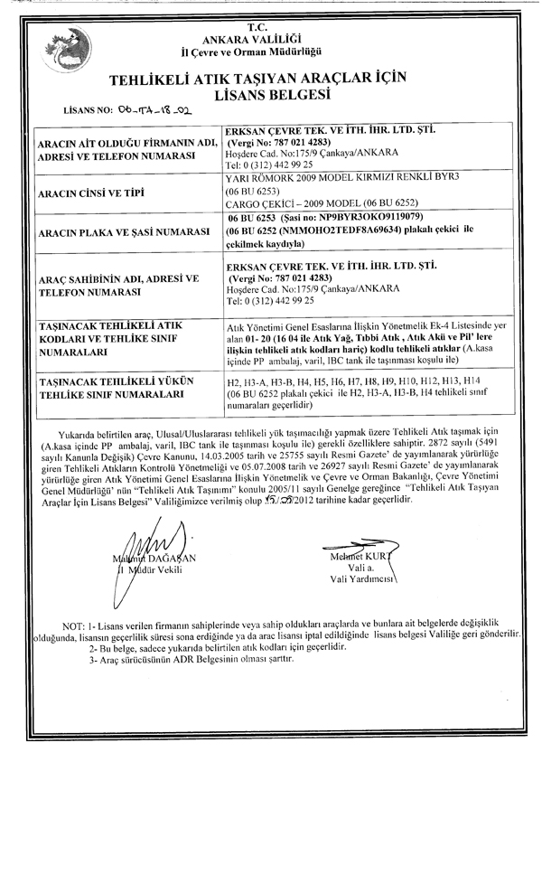 LİSANSLI OLARAK TAŞINABİLECEK ATIKLAR